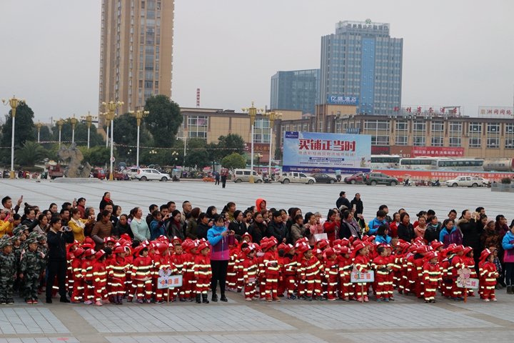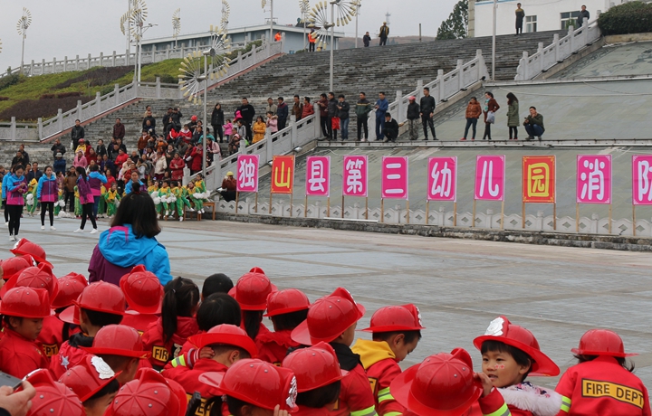 独山县第三幼儿园在火车站举行冬季消防运动会开幕现场